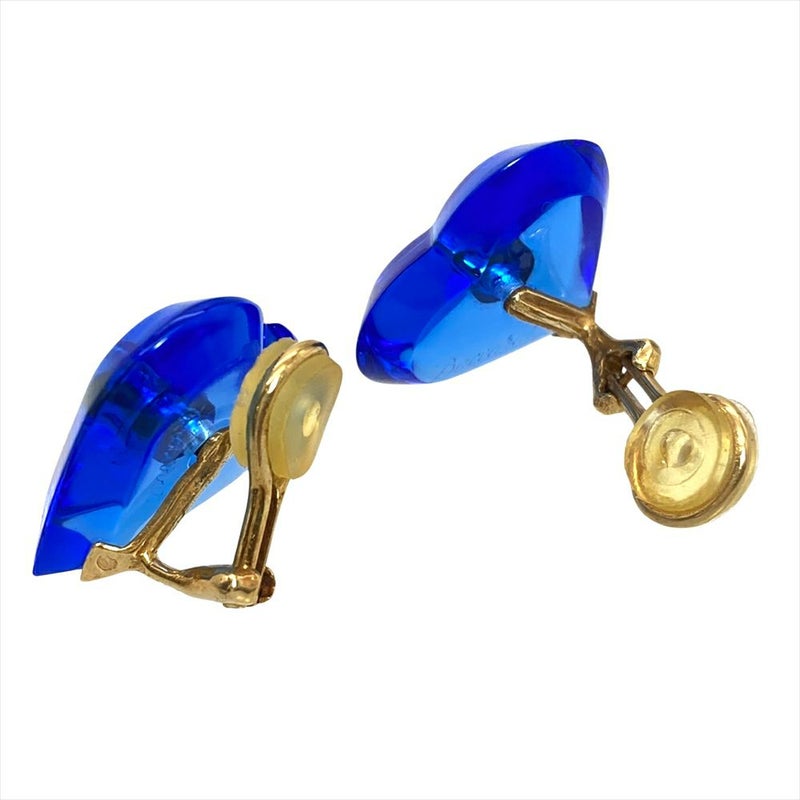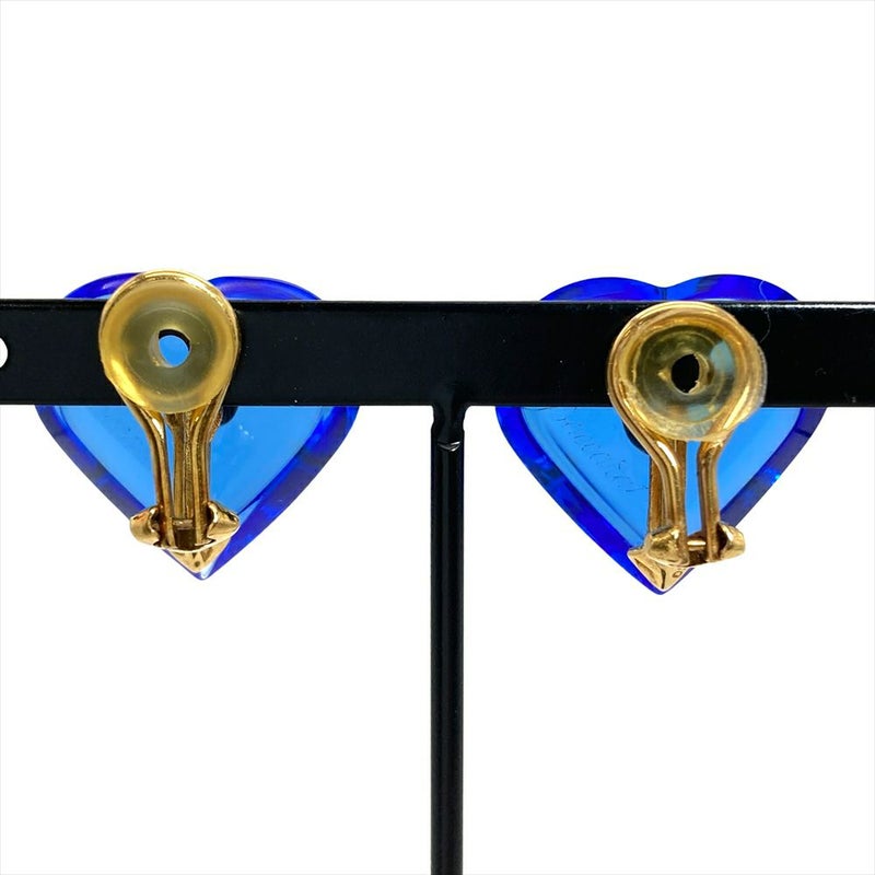 5. バカラ Baccarat アラフォリ ハート クリスタル イヤリング K18YG 10.2g ブルー ガラス イエローゴールド レディース【中古】