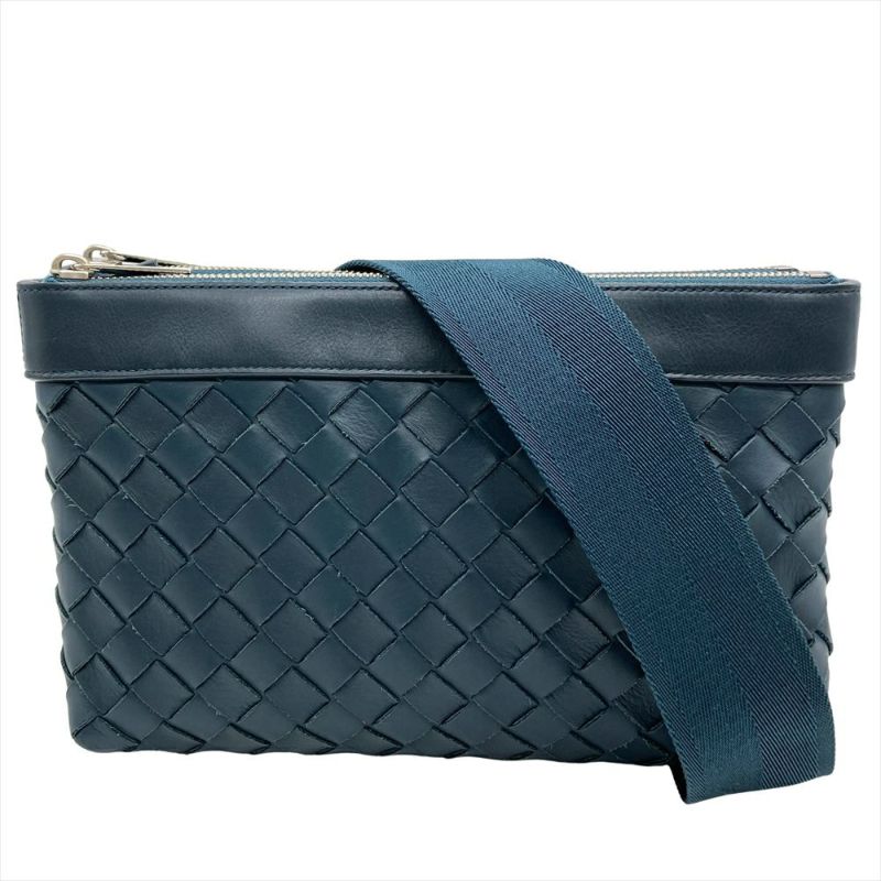 3. ボッテガヴェネタ BOTTEGA VENETA イントレチャート デュオ ショルダーバッグ カーフスキン グリーン シルバー金具 ユニセックス【中古】