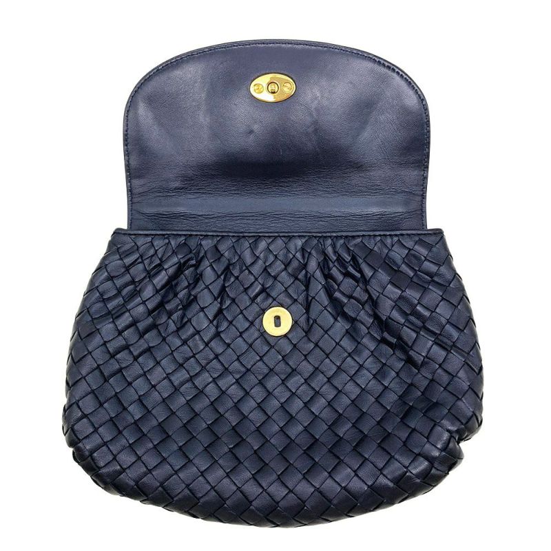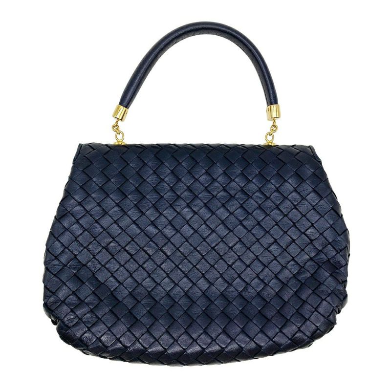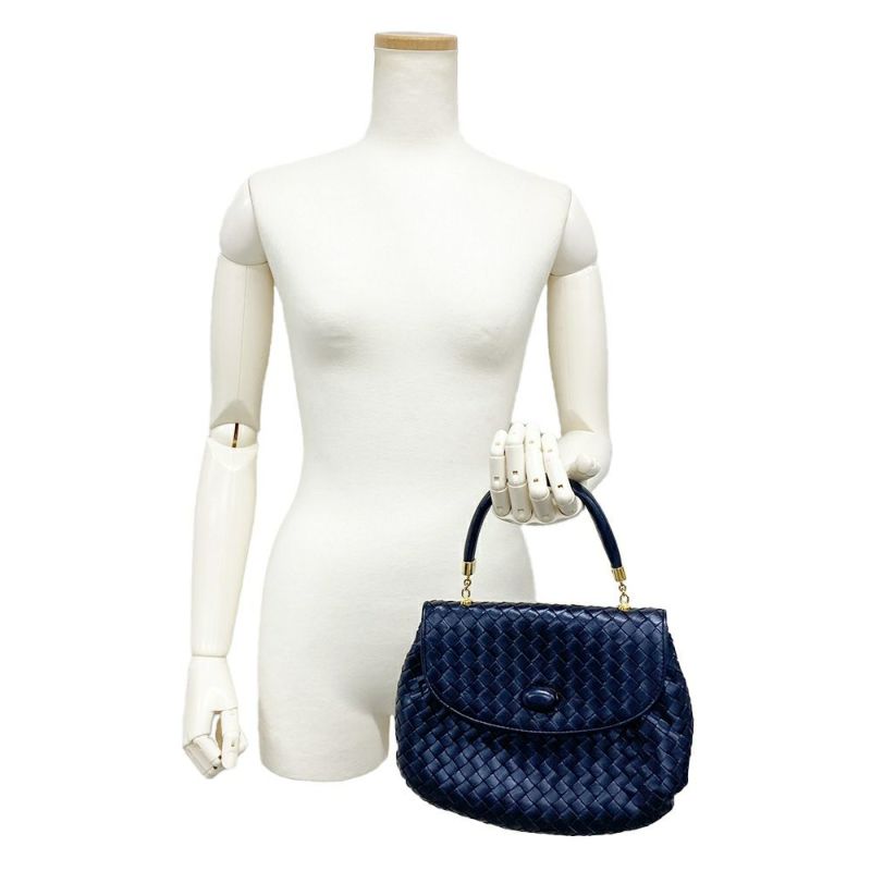 3. ボッテガヴェネタ BOTTEGA VENETA イントレチャート ハンドバッグ レザー ネイビー ゴールド金具 レディース【中古】