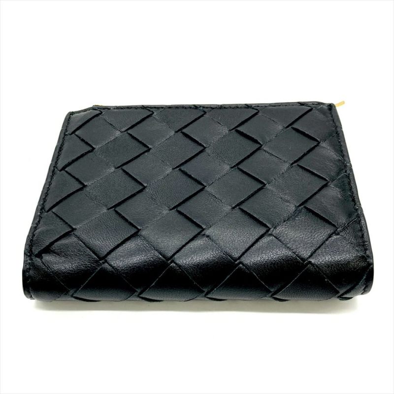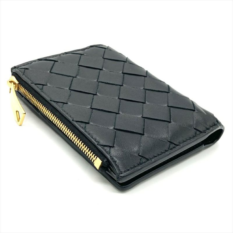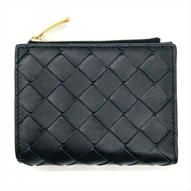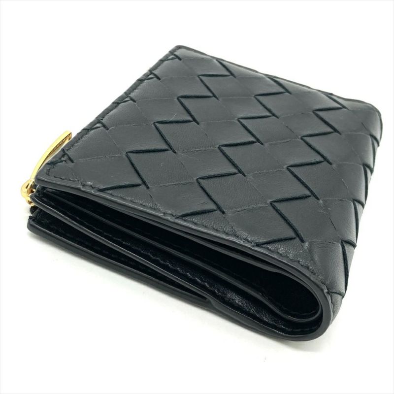 5. ボッテガヴェネタ BOTTEGA VENETA イントレチャート 二つ折り財布 レザー 742330 VCPP 38425 ブラック ゴールド金具【中古】