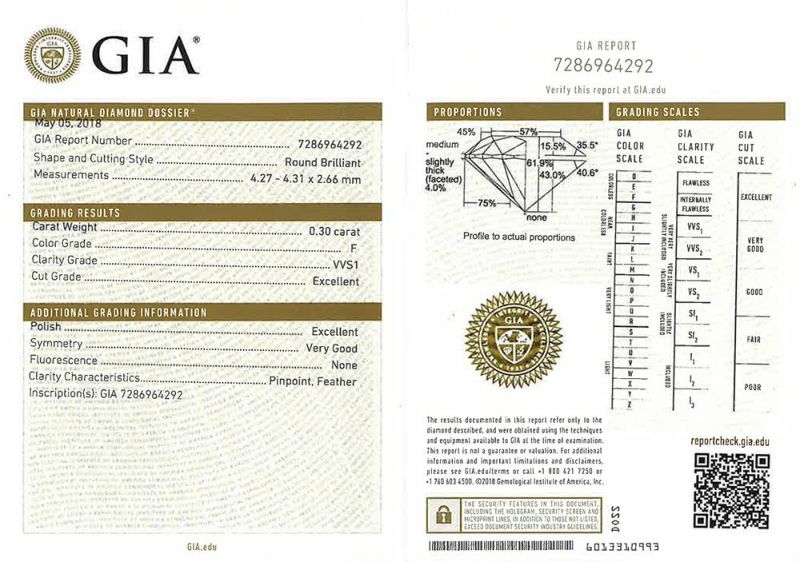 商品名 ポン ドゥ パリ ダイヤモンド 0.30ct(F/VVS1/VG) ソリテール