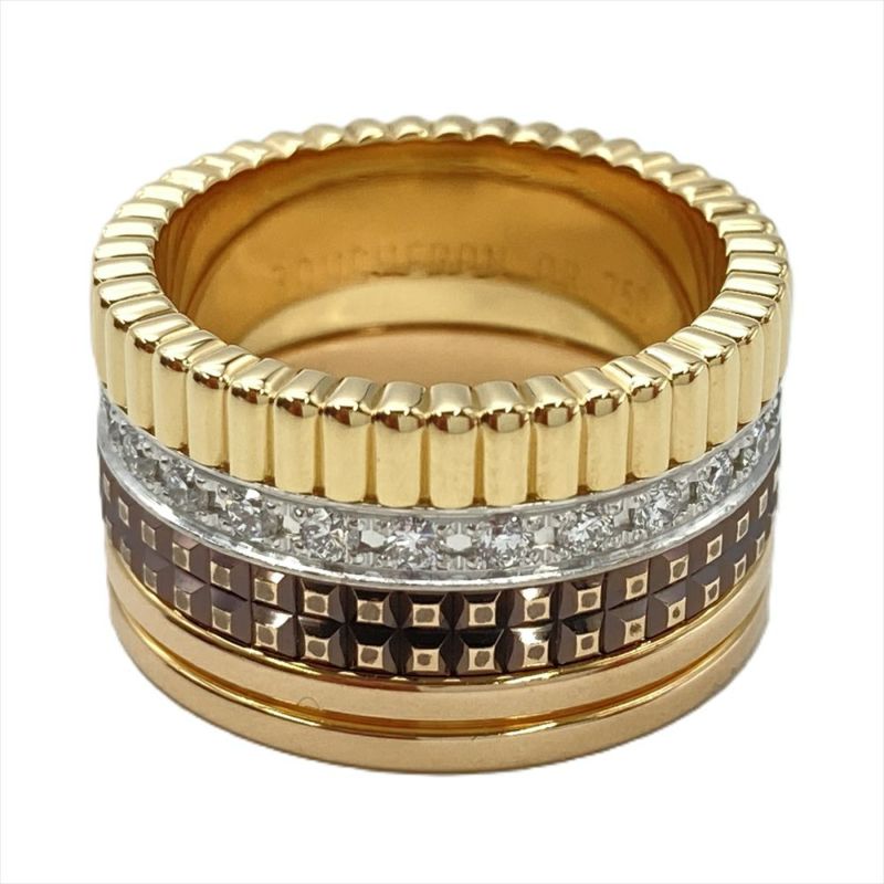 - ブシュロン BOUCHERON キャトル クラシック リング 指輪 ダイヤモンド #50 JRG00623 K18YG 17.9g K18PG K18WG ラージ ブラウンPVD【中古】