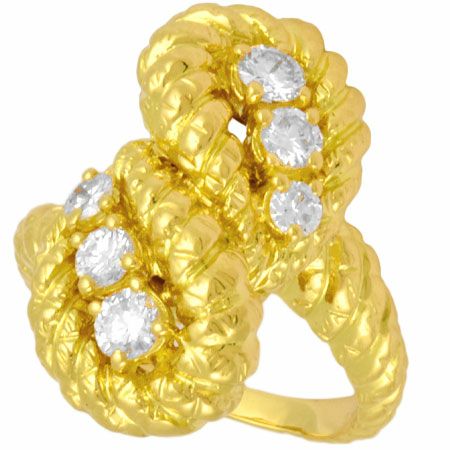 新品仕上げ済 送料無料 ブシュロン BOUCHERON 6P ダイヤモンド リング K18YG #7 ヴィンテージ【中古】