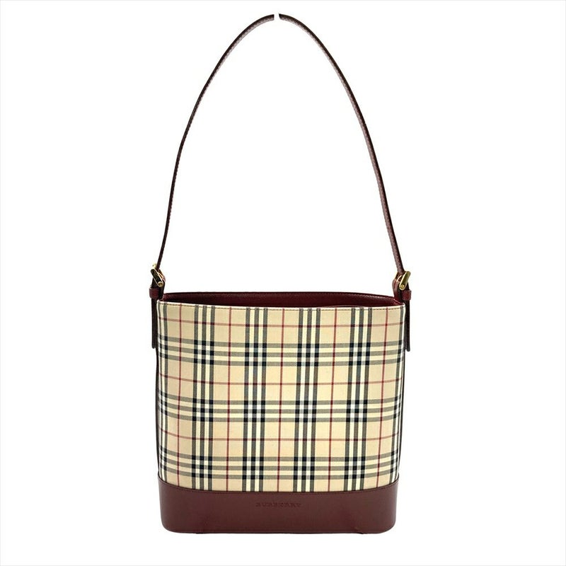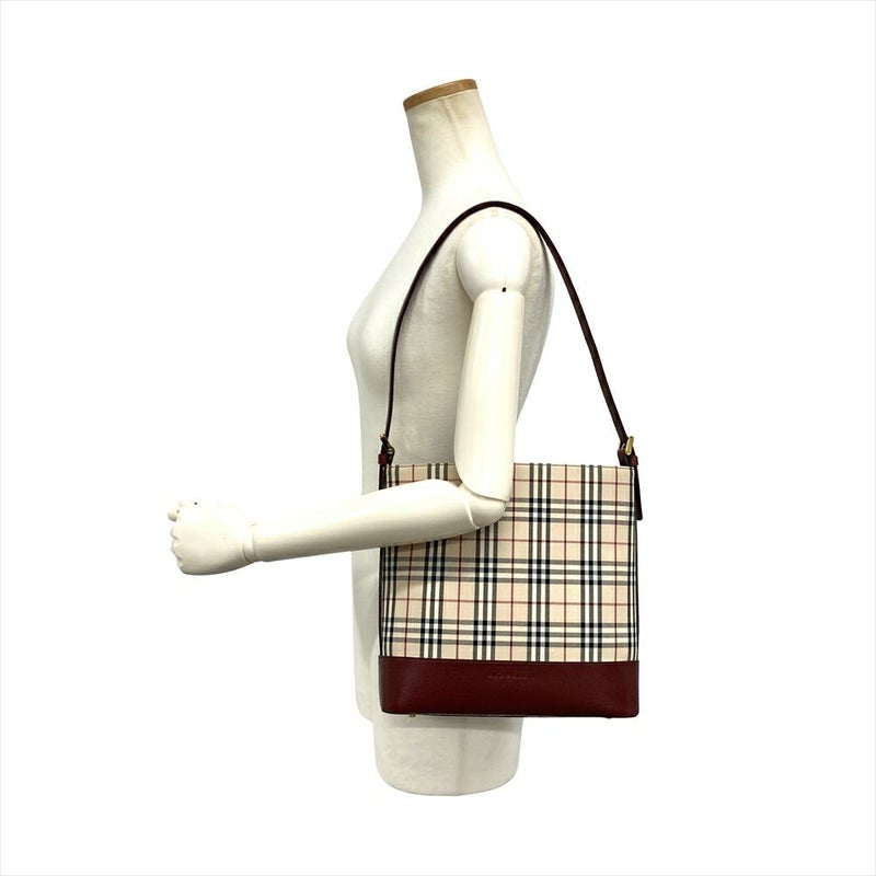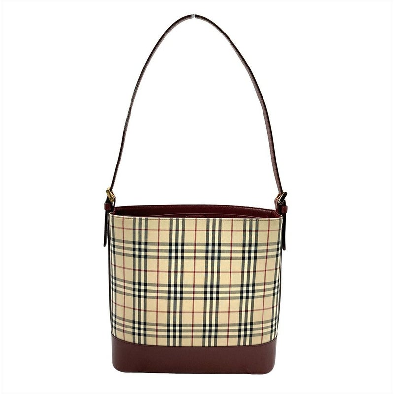 バーバリー BURBERRY ノバチェック ワンショルダー ショルダーバッグ キャンバス ゴールド金具 ベージュ×ボルドー レディース【中古】
