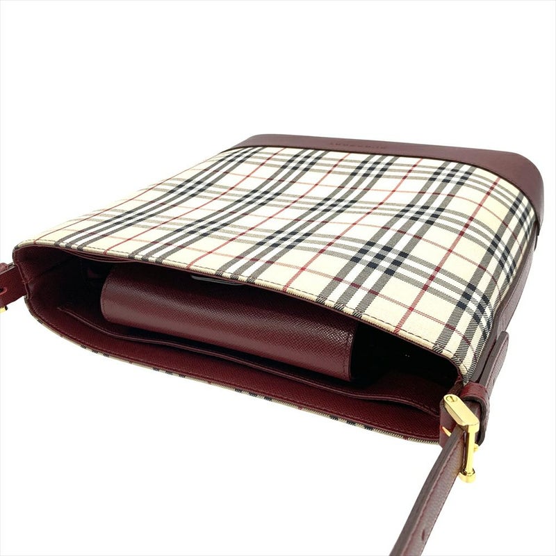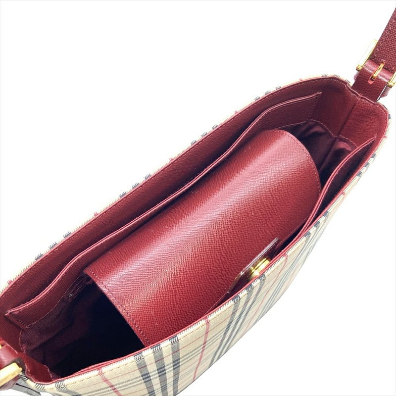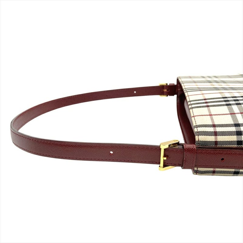 5. バーバリー BURBERRY ノバチェック ワンショルダー ショルダーバッグ キャンバス ゴールド金具 ベージュ×ボルドー レディース【中古】