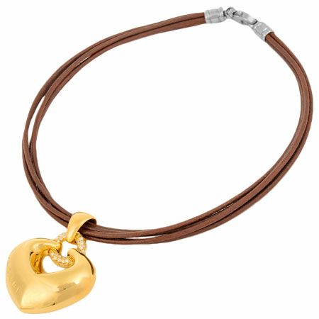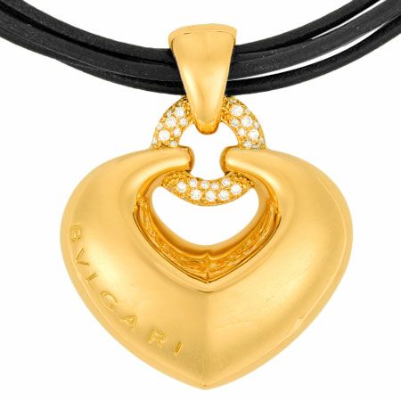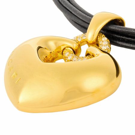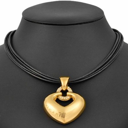 送料無料 ブルガリ BVLGARI アブラッチオ ダイヤモンド ペンダント ネックレス K18YG レザー チョーカー【中古】