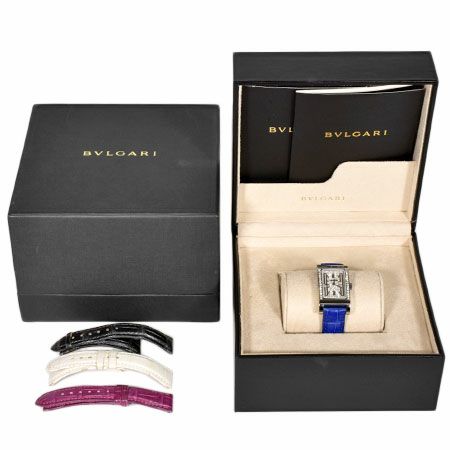 送料無料 仕上げ済 電池交換済 6か月動作保証付 ブルガリ BVLGARI レッタンゴロ ダイヤベゼル K18WG レディース 時計 クォーツ ダイヤ文字盤 RTW39G【中古】