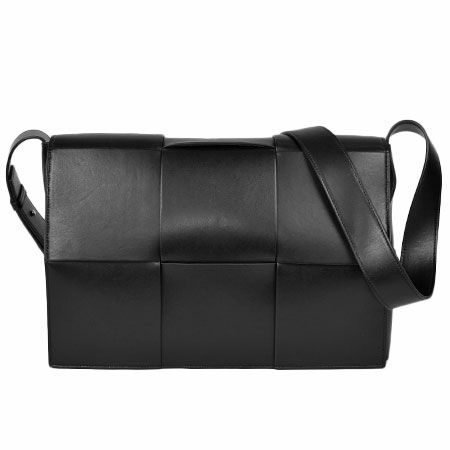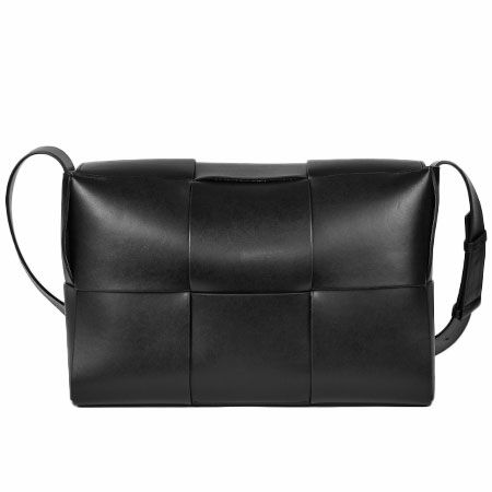 送料無料 ボッテガヴェネタ BOTTEGA VENETA マキシ イントレチャート クロスボディ カセットバッグ ショルダーバッグ メッセンジャーバッグ ブラック レザー 黒【中古】