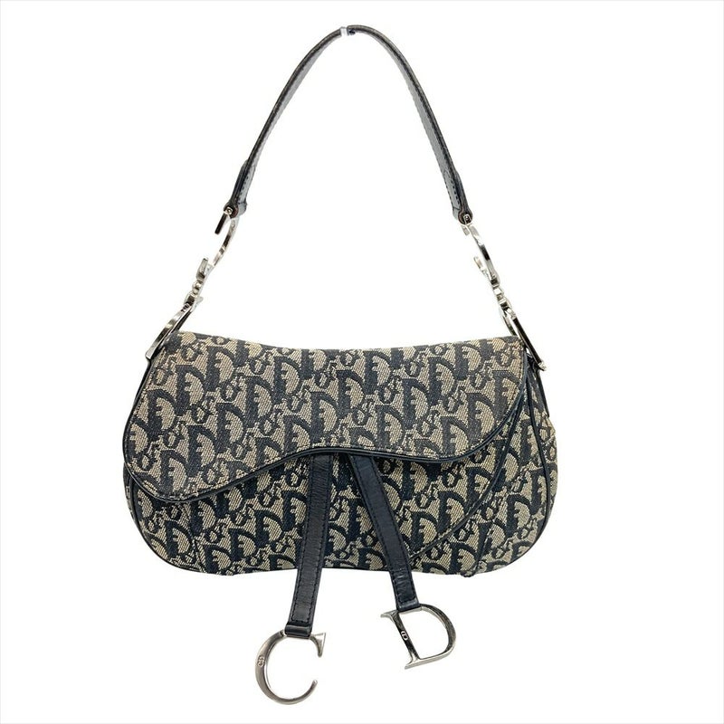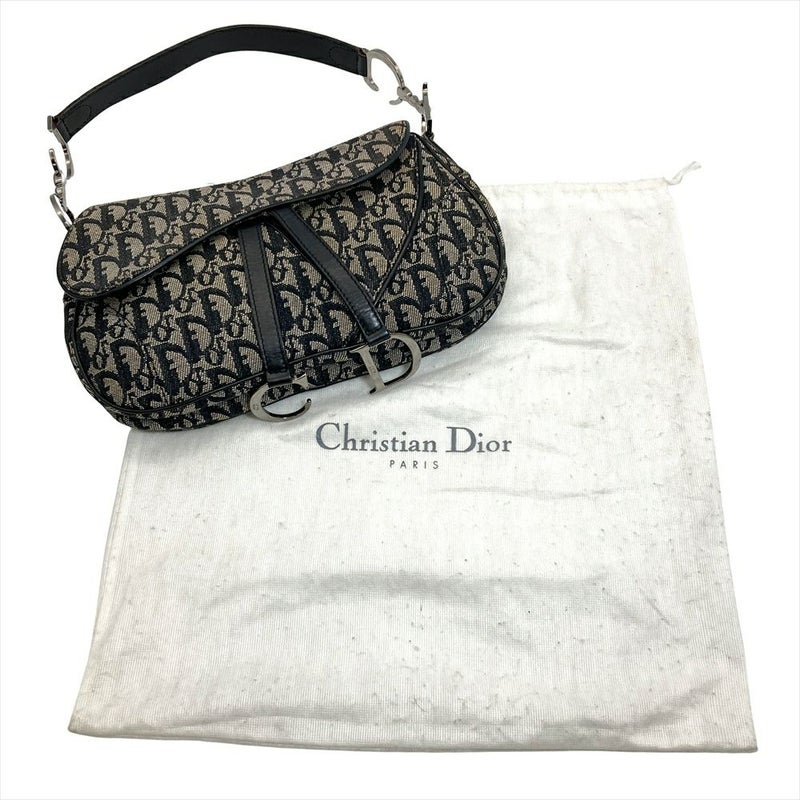 クリスチャンディオール Christian Dior トロッター サドル ワンショルダー ショルダーバッグ キャンバス シルバー金具 ブラック×ベージュ レディース【中古】