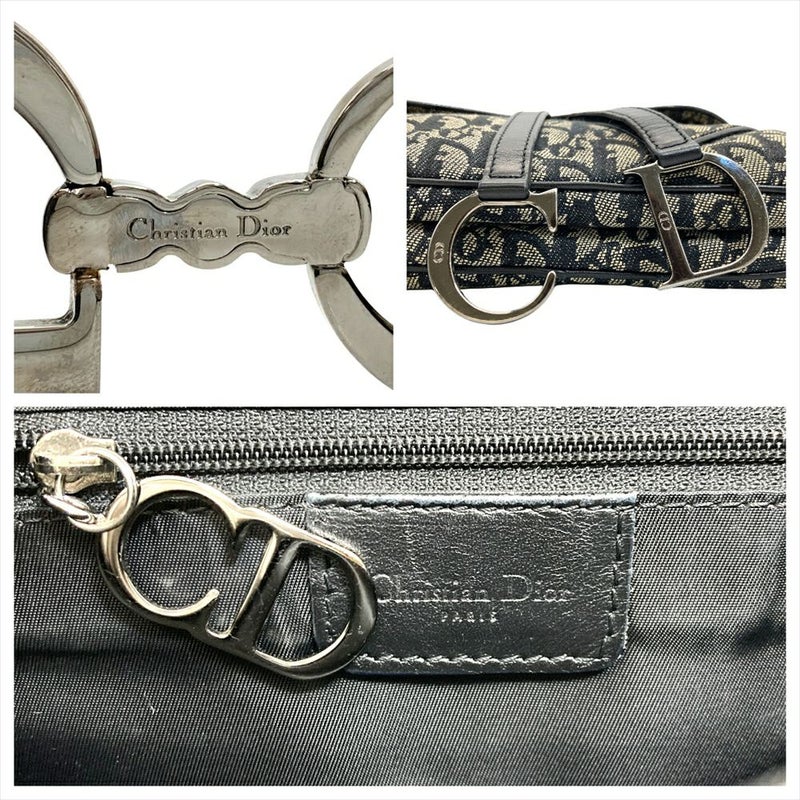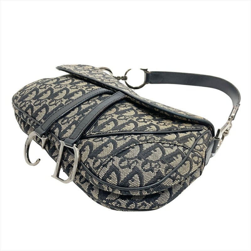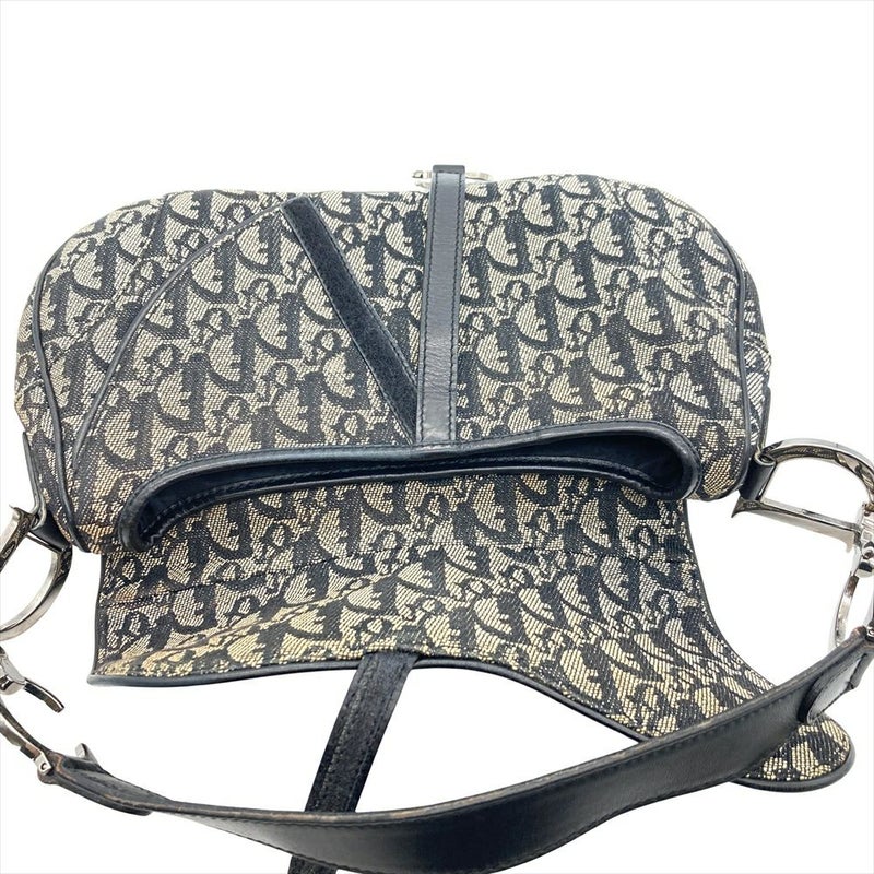 3. クリスチャンディオール Christian Dior トロッター サドル ワンショルダー ショルダーバッグ キャンバス シルバー金具 ブラック×ベージュ レディース【中古】
