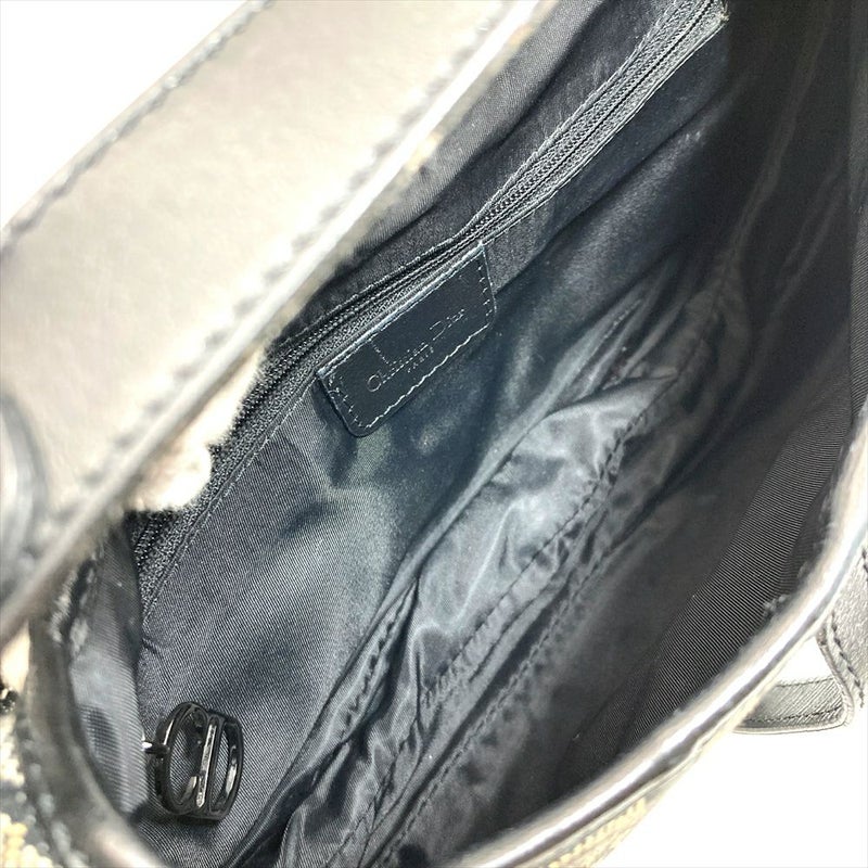 4. クリスチャンディオール Christian Dior トロッター サドル ワンショルダー ショルダーバッグ キャンバス シルバー金具 ブラック×ベージュ レディース【中古】