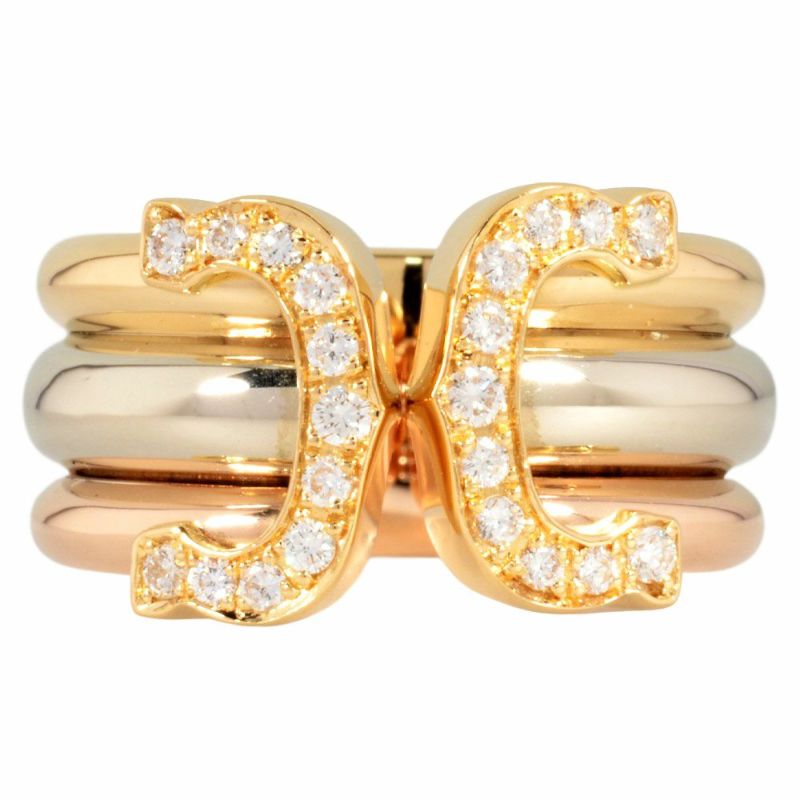 3. カルティエ Cartier 2C リング 指輪 ダイヤモンド #47 K18YG 7.7g K18WG K18PG スリーカラー【中古】