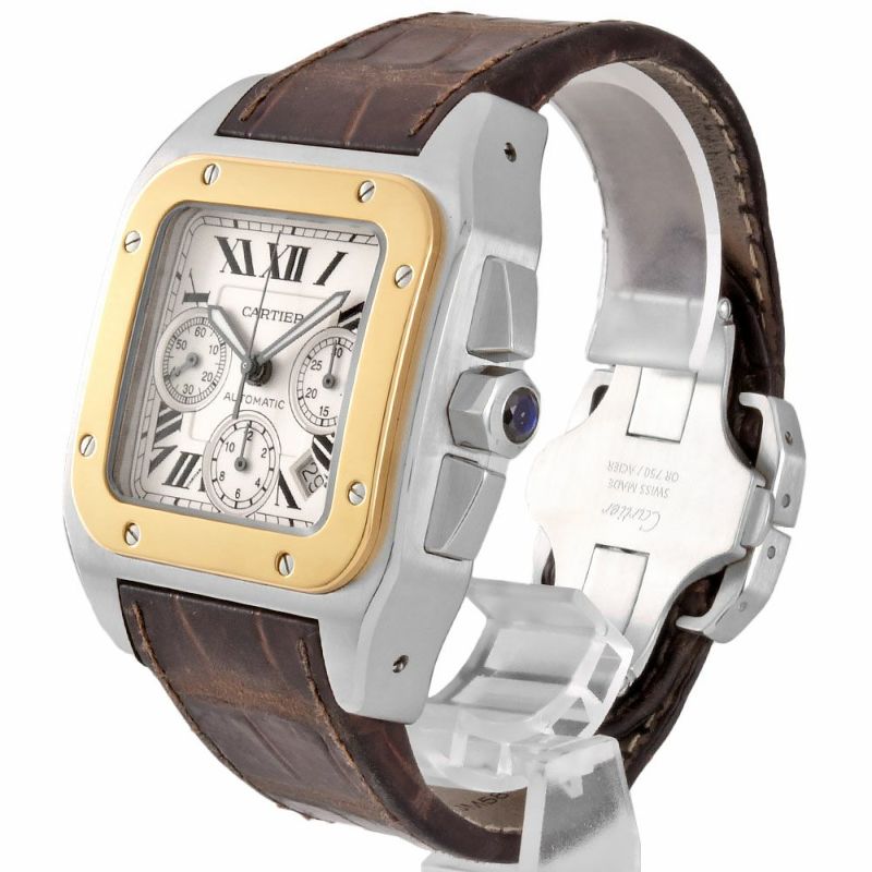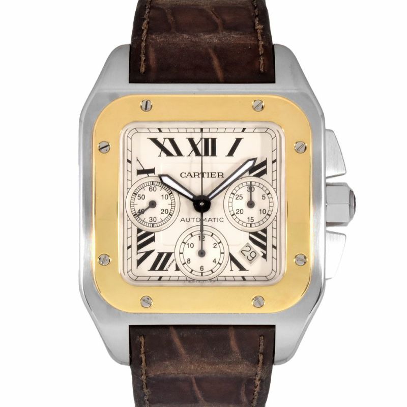 - カルティエ Cartier W20091X7 サントス100 腕時計 ホワイト文字盤 クロノグラフ メンズ【中古】