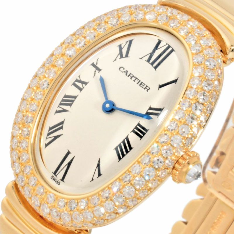 3. カルティエ Cartier 8057912 ベニュワール 腕時計 ホワイト文字盤 ダイヤベゼル 750 レディース【中古】