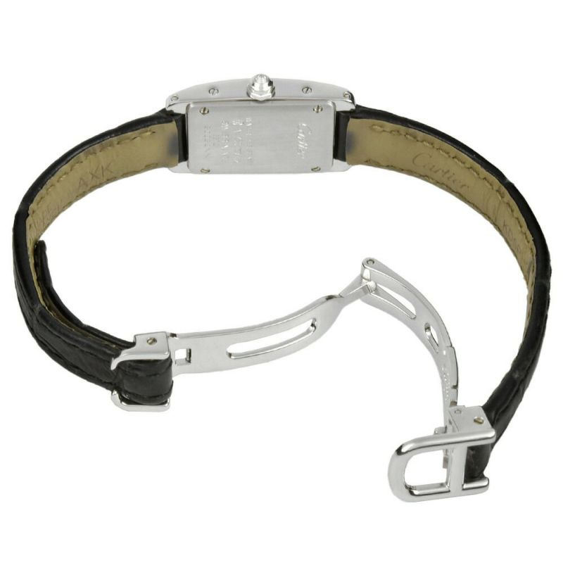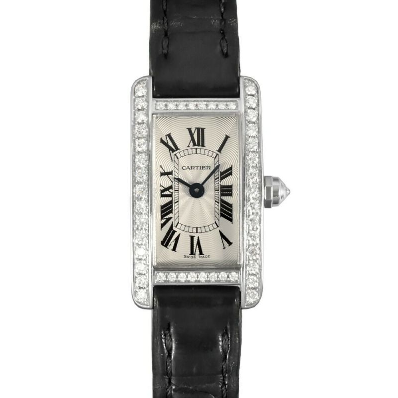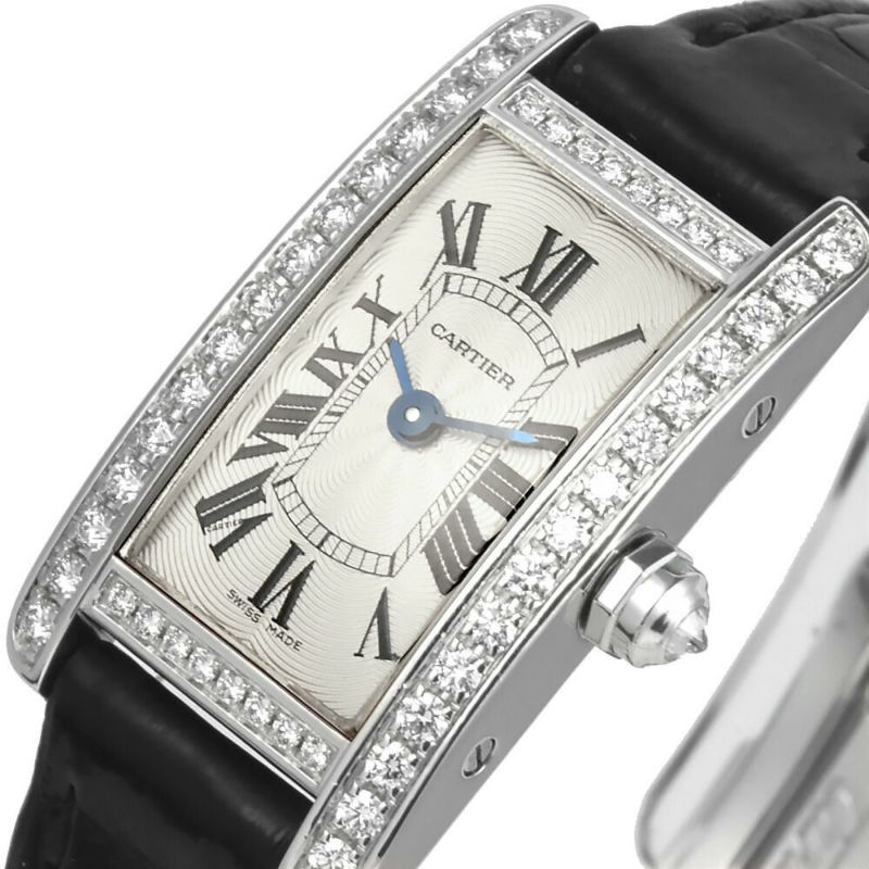 - カルティエ Cartier タンク アメリカン ミニ K18WG ダイヤベゼル レディース 時計 クォーツ シルバー文字盤 WB710015【中古】