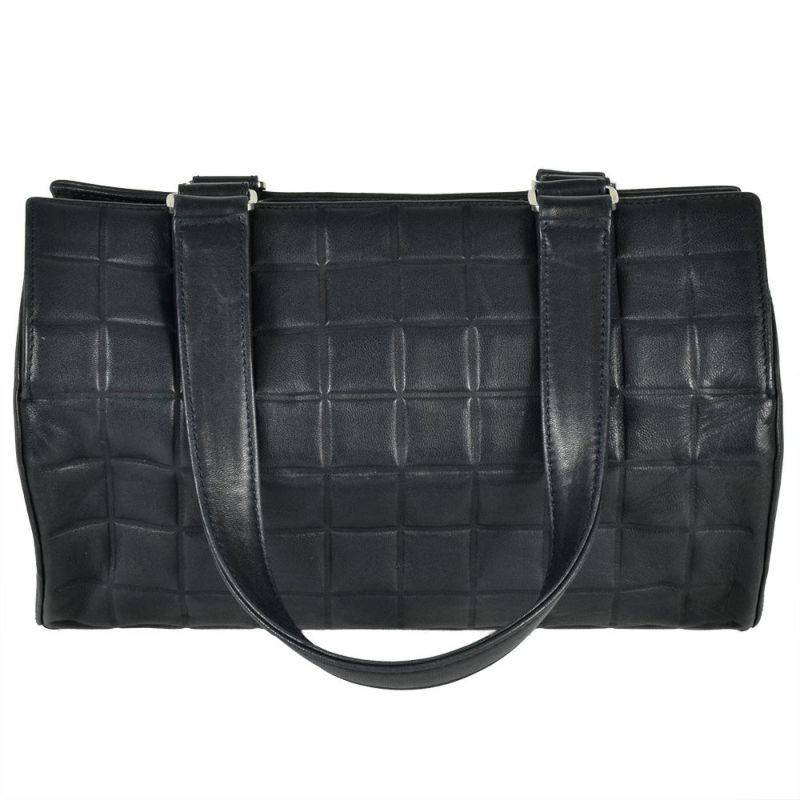 4. シャネル CHANEL チョコバー ハンドバッグ ラムスキン ネイビー シルバー金具 7桁7番台 レディース【中古】
