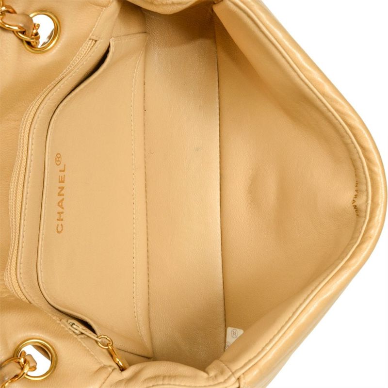 3. シャネル CHANEL Wフラップ チェーン ショルダーバッグ ラムスキン ベージュ ゴールド金具 ココマーク【中古】
