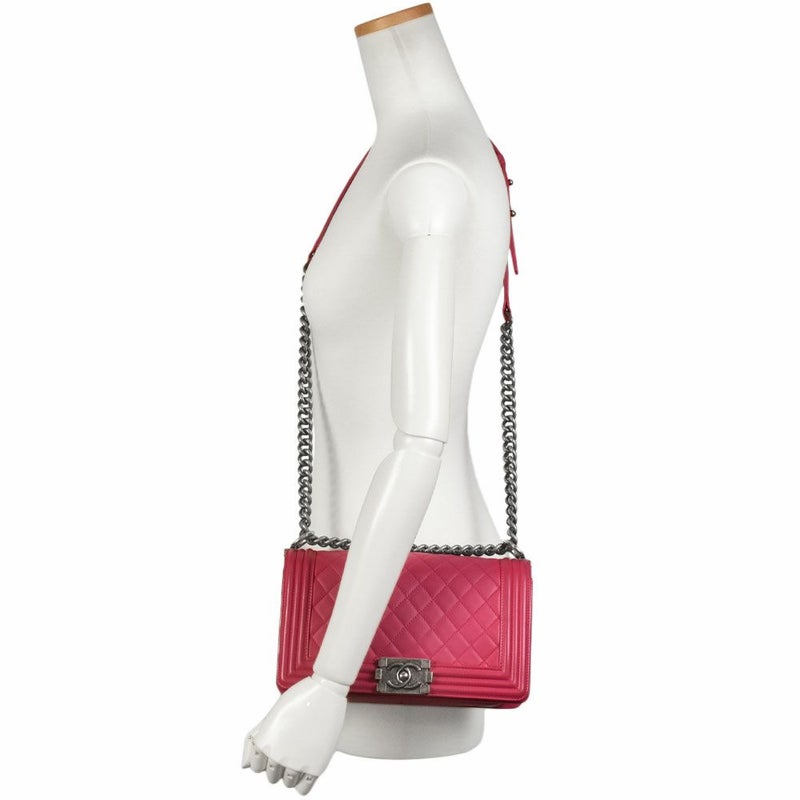 5. シャネル CHANEL ボーイシャネル ココマーク マトラッセ チェーン ショルダーバッグ ラムスキン A67086 ピンク アンティークシルバー金具 19番台(2014年製造)【中古】