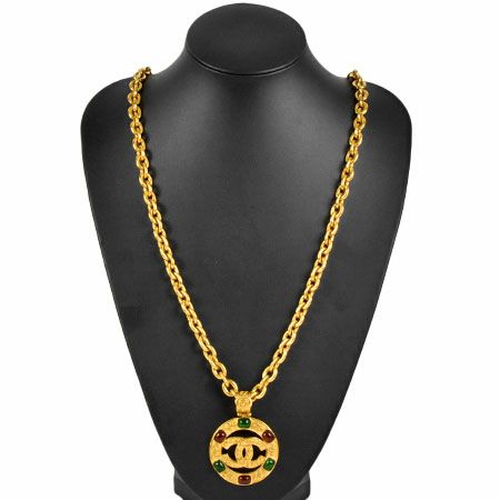 5. シャネル CHANEL ネックレス グリポア ココマーク カラーストーン(レッド・グリーン) 94A ゴールドメタル アクセサリー ヴィンテージ グリポワ【中古】