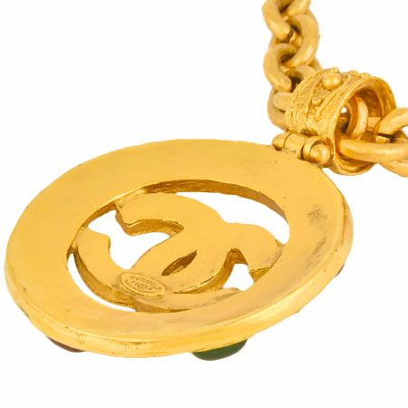 3. シャネル CHANEL ネックレス グリポア ココマーク カラーストーン(レッド・グリーン) 94A ゴールドメタル アクセサリー ヴィンテージ グリポワ【中古】