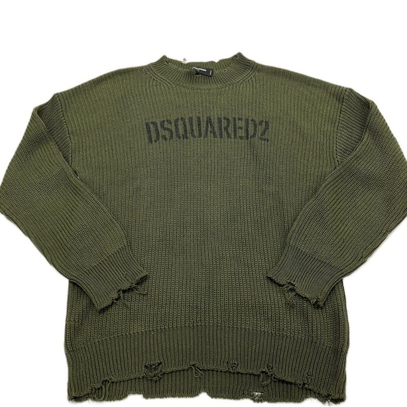 4. ディースクエアード DSQUARED2 デストロイ ニット コットン S74HA1290 カーキ L メンズ【中古】