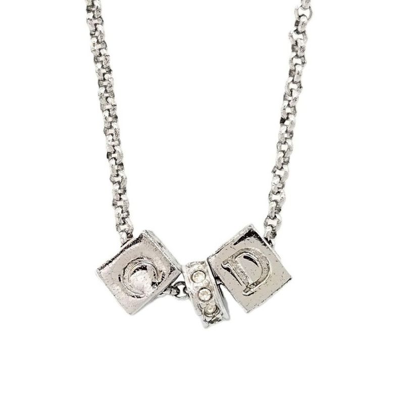 3. ディオール Dior ネックレス シルバー CDロゴ キューブ ラインストーン サイコロ【中古】