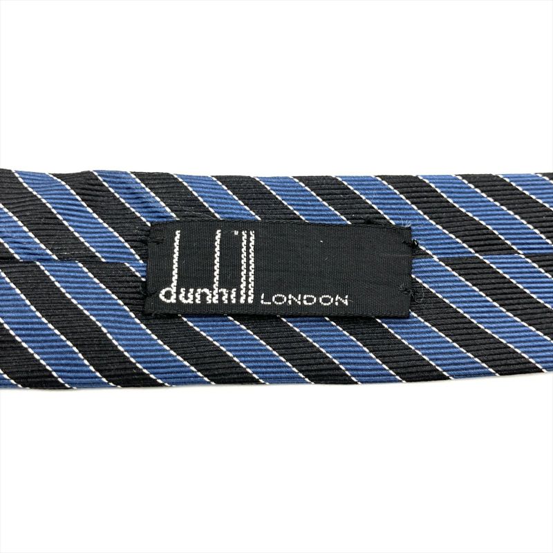 4. ダンヒル Dunhill ネクタイ シルク 145cm ブルー ストライプ柄 ビジネス 紳士 メンズ【中古】