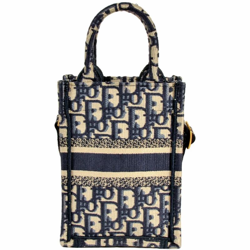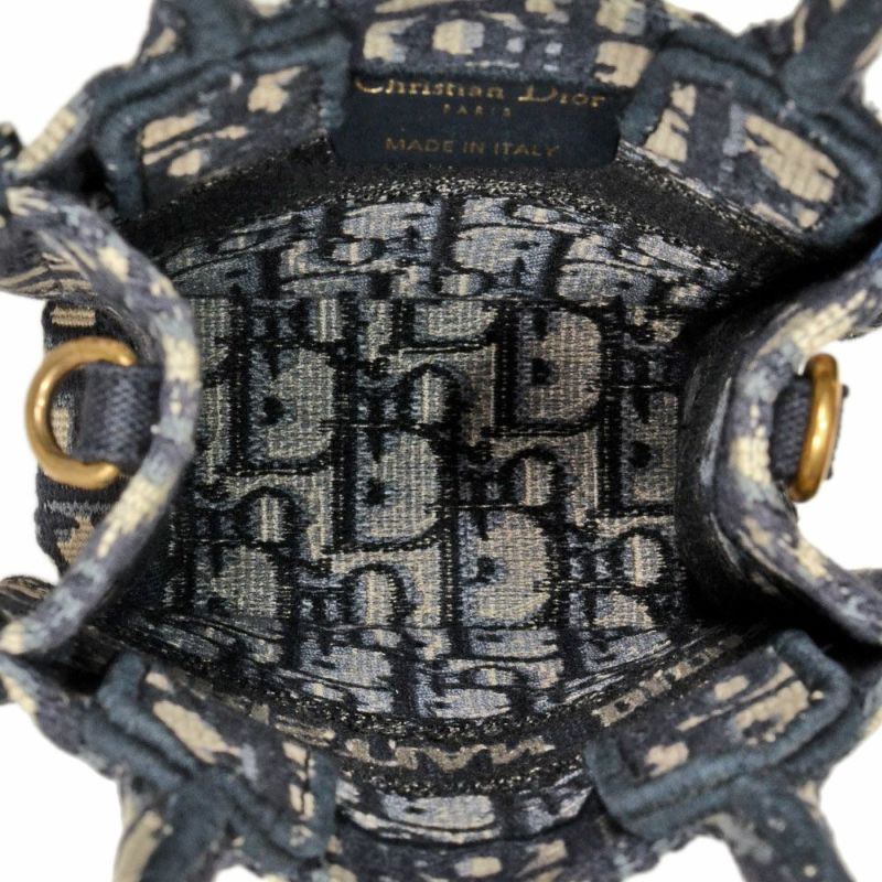 5. ディオール Dior ブックトート ミニ バーティカル ハンドバッグ 2WAY キャンバス ブルー ショルダーストラップ付き オブリーク レディース【中古】