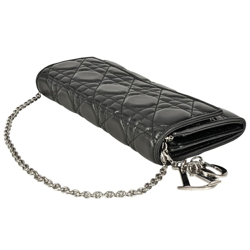 5. ディオール Dior レディディオール カナージュ チェーンウォレット 長財布 レザー CAL43060P ノワール シルバー金具【中古】