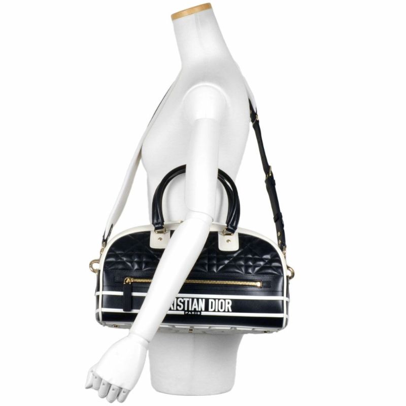 3. ディオール Dior スモール ボウリングバッグ ミニボストンバッグ 2WAY レザー M6202OFCA ブラック スポーティ レディース【中古】
