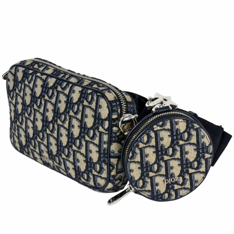 5. ディオール Dior オブリーク ボディバッグ キャンバス 29-BO-0271 ネイビー ジャカード ポーチ付き【中古】