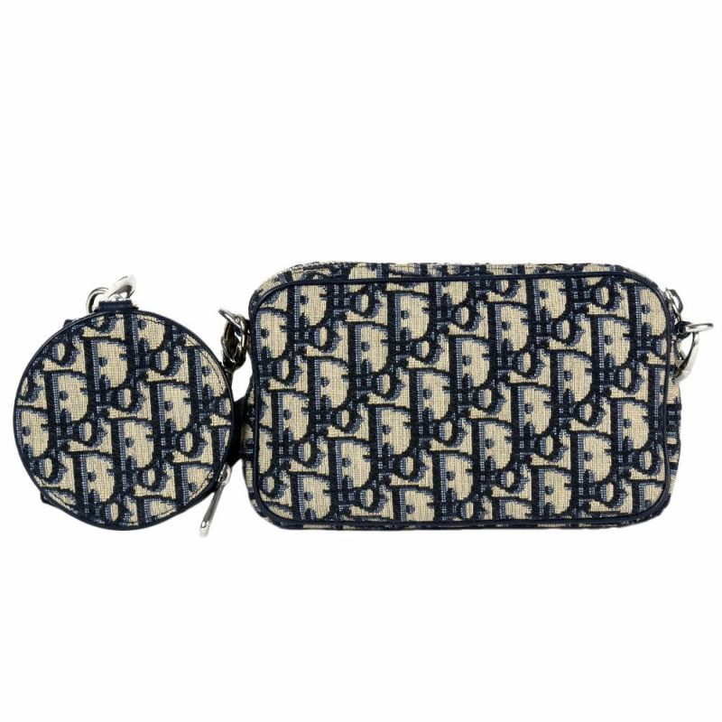 送料無料 ディオール Dior オブリーク ボディバッグ キャンバス 29-BO-0271 ネイビー ジャカード ポーチ付き【中古】
