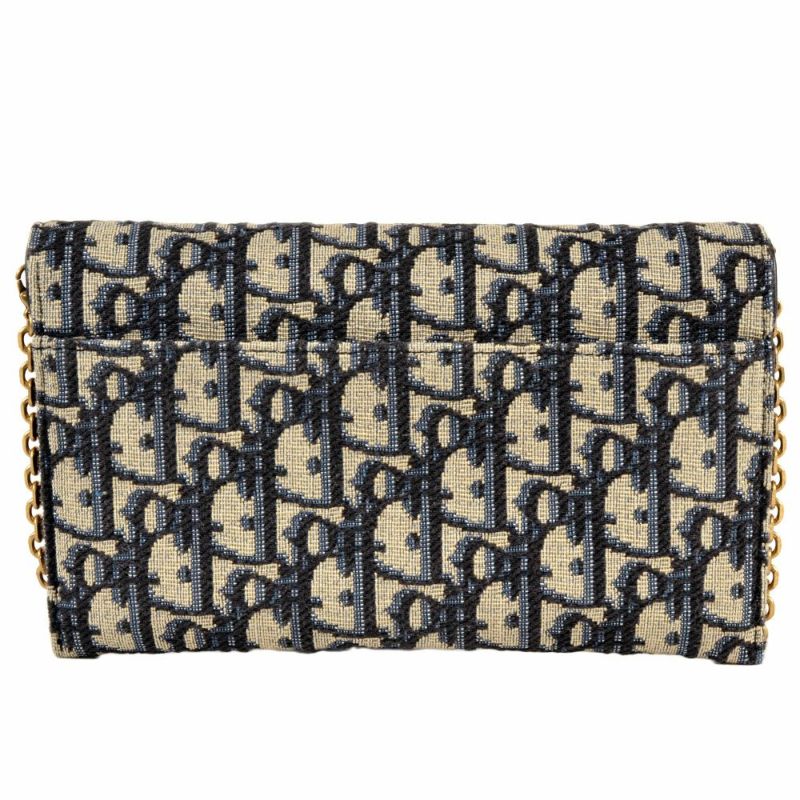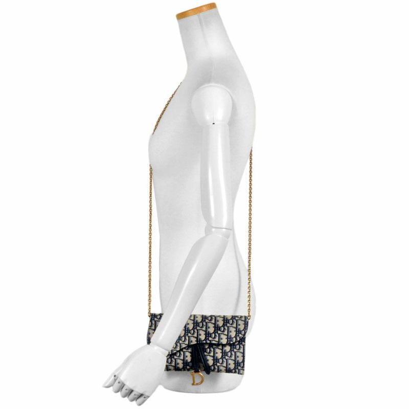 3. ディオール Dior サドル ウォレット オン チェーン ジャガード 47-MA-0252 ブルー オブリーク レディース【中古】
