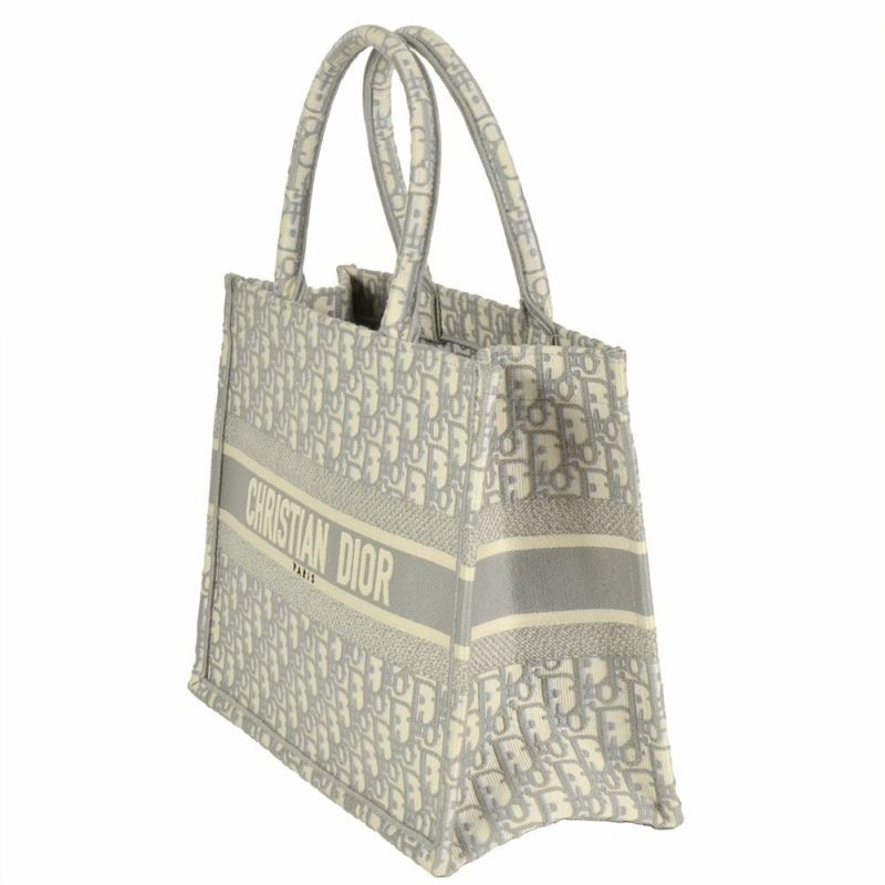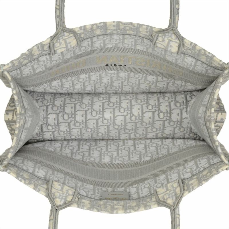 4. ディオール Dior オブリーク エンブロイダリー ミディアム ブックトート トートバッグ キャンバス M1296ZRIW グレー トロッター レディース【中古】