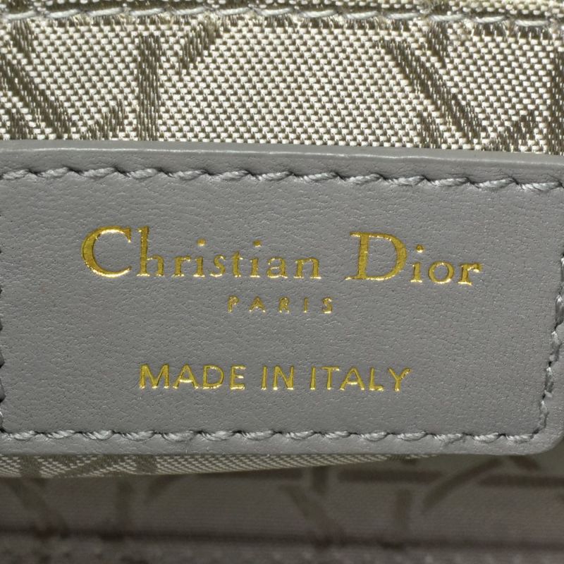 5. ディオール Dior レディディオール スモール カナージュ ハンドバッグ 2WAY ラムスキン グレー ゴールド金具 ショルダーストラップ付【中古】