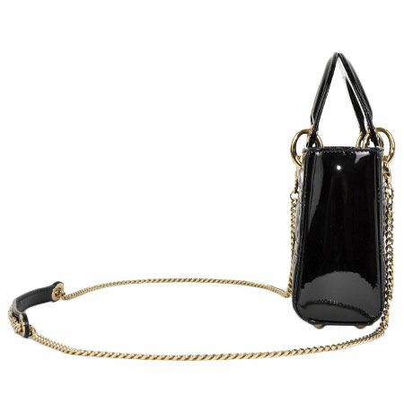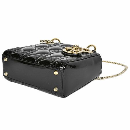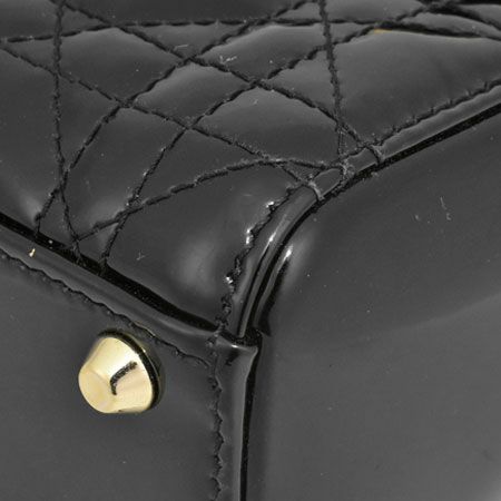 3. クリスチャンディオール Christian Dior レディディオール ミニバッグ カナージュ パテントカーフスキン ハンドバッグ トートバッグ エナメル レザー ブラック【中古】