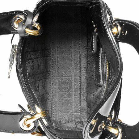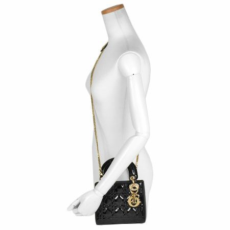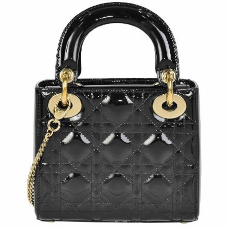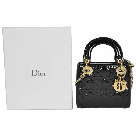 送料無料 クリスチャンディオール Christian Dior レディディオール ミニバッグ カナージュ パテントカーフスキン ハンドバッグ トートバッグ エナメル レザー ブラック【中古】