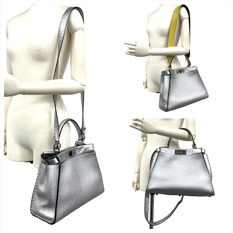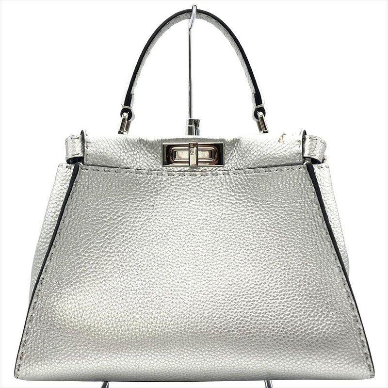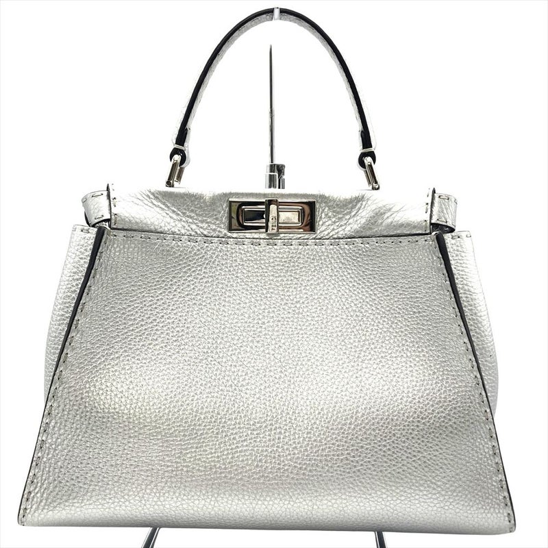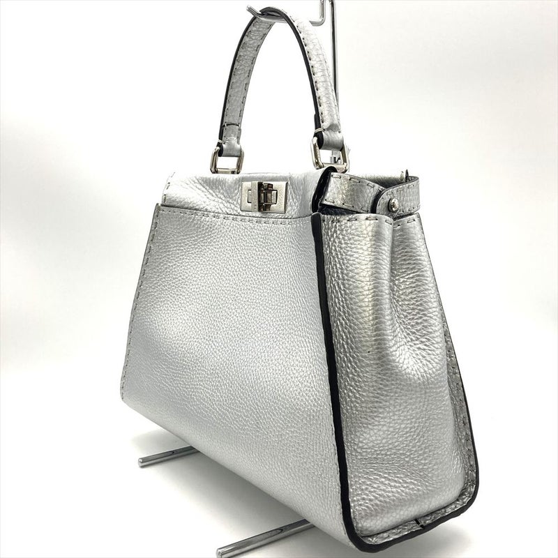 4. フェンディ FENDI ピーカブー ミディアム ハンドバッグ カーフ シルバー ミディアム アイコニック セレリア レディース【中古】