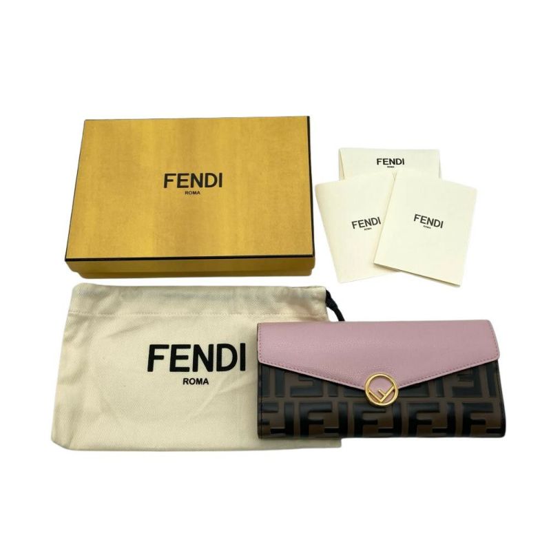 3. フェンディ FENDI ズッカ エフイズ 長財布 レザー 8M0251 A6CB ピンク レディース【中古】