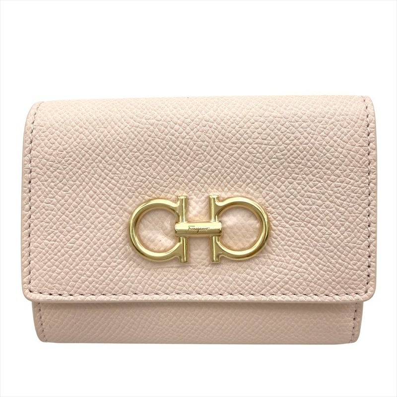 フェラガモ Ferragamo ガンチーニ 三つ折り財布 レザー 200862 ピンク コンパクト【中古】