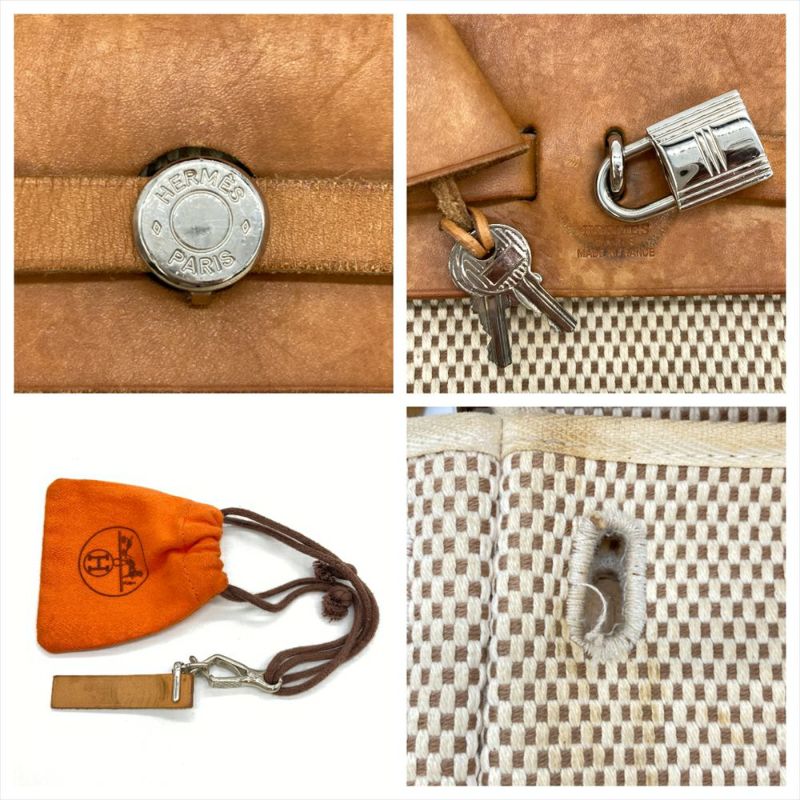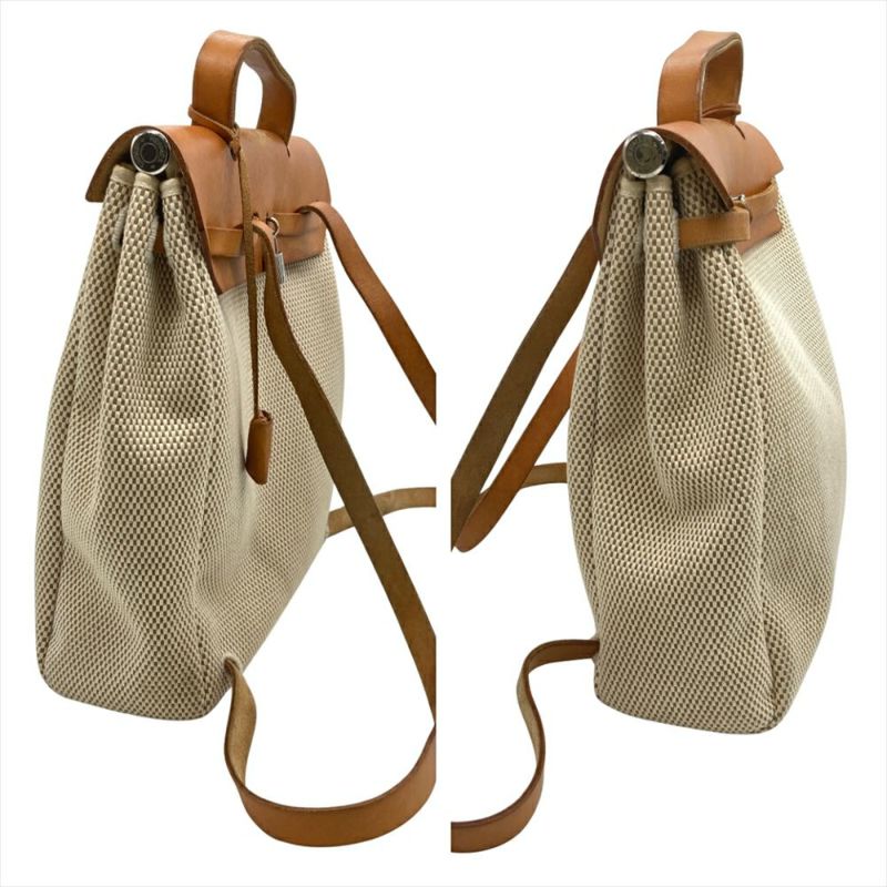 3. エルメス HERMES エールバッグ アド リュック トワルGM □G刻印 ベージュ シルバー金具 レディース【中古】