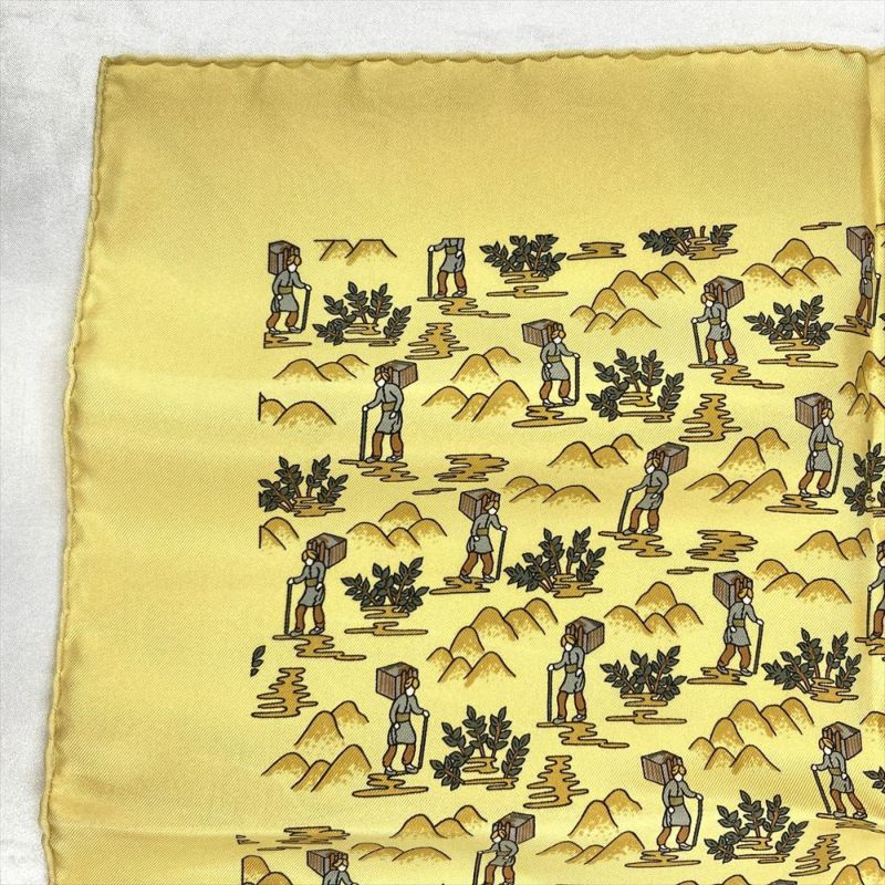 3. エルメス HERMES プチカレ42 山場 スカーフ シルク イエロー ヴィンテージ ユニセックス【中古】