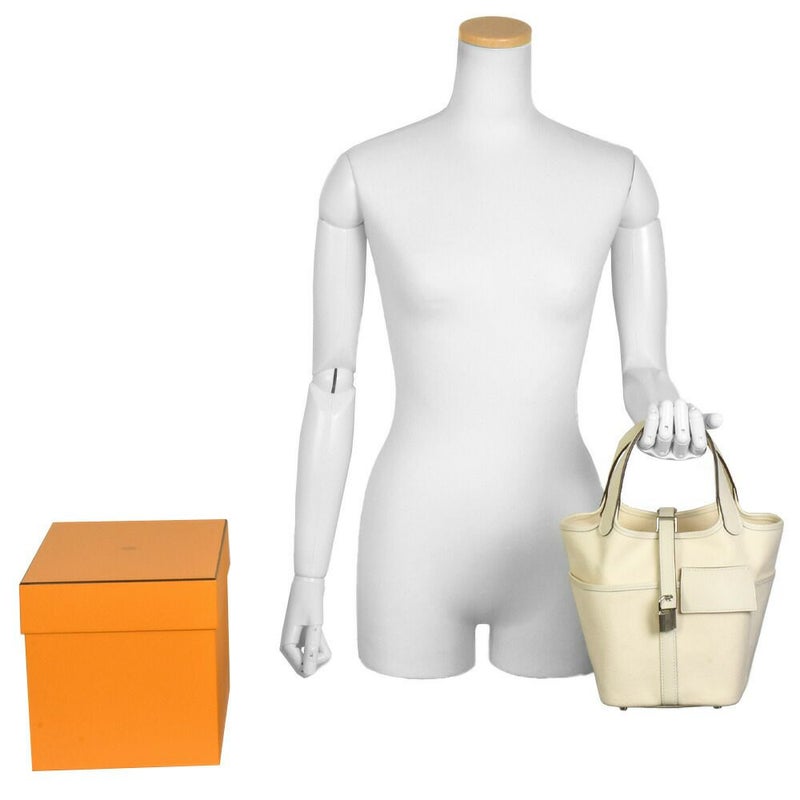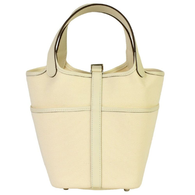3. エルメス HERMES ピコタンロック カーゴ PM ハンドバッグ スイフト トワルゴエラン キャンバス U刻印 ナタ シルバー金具 アイボリー【中古】
