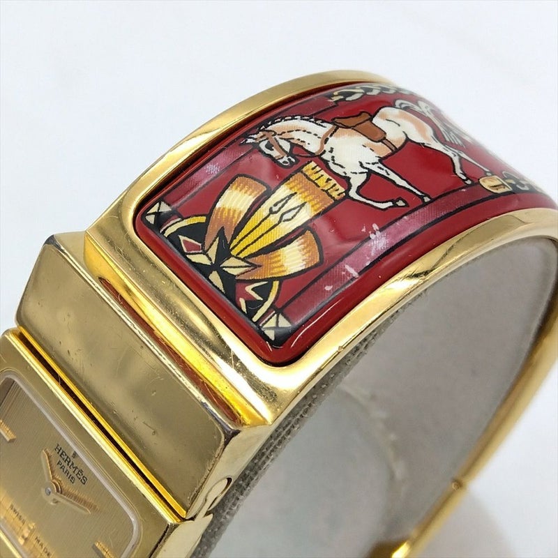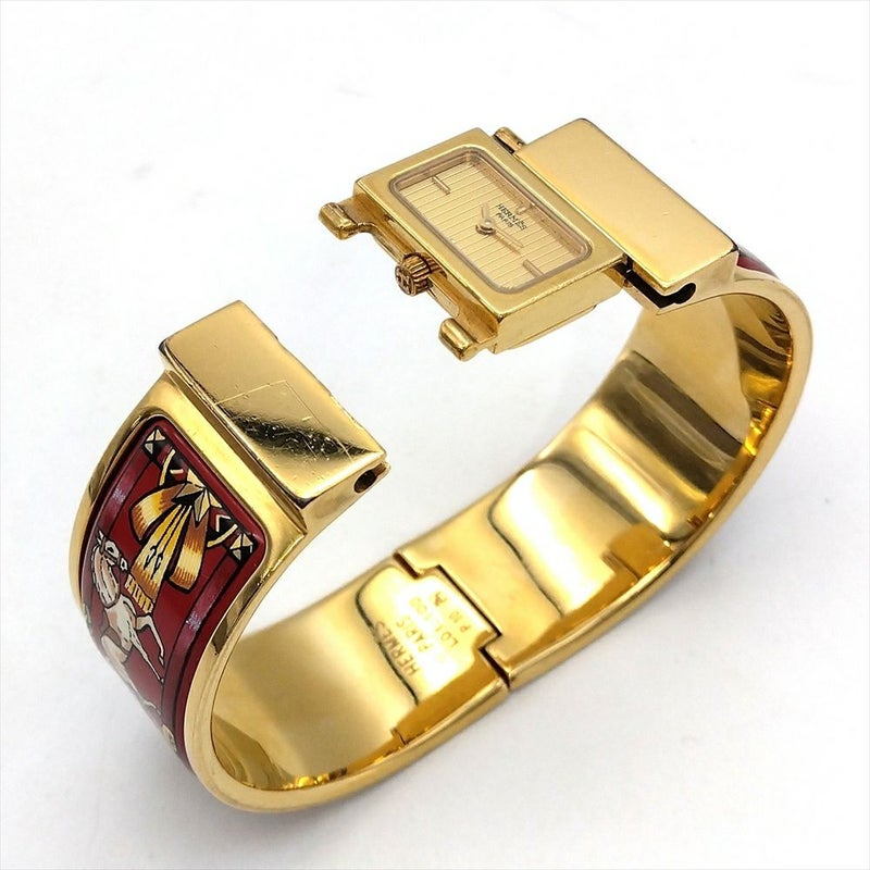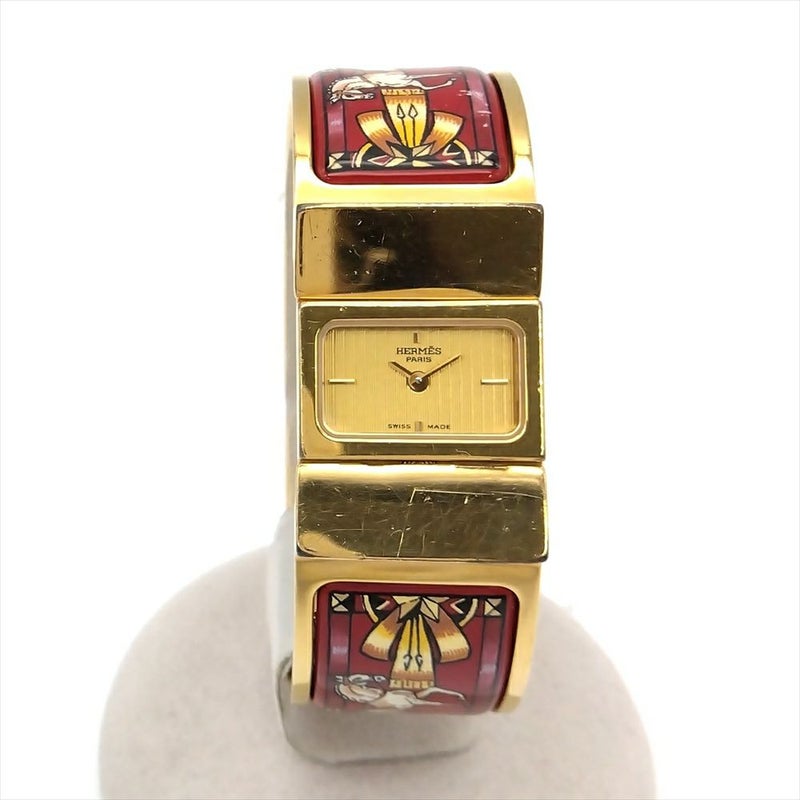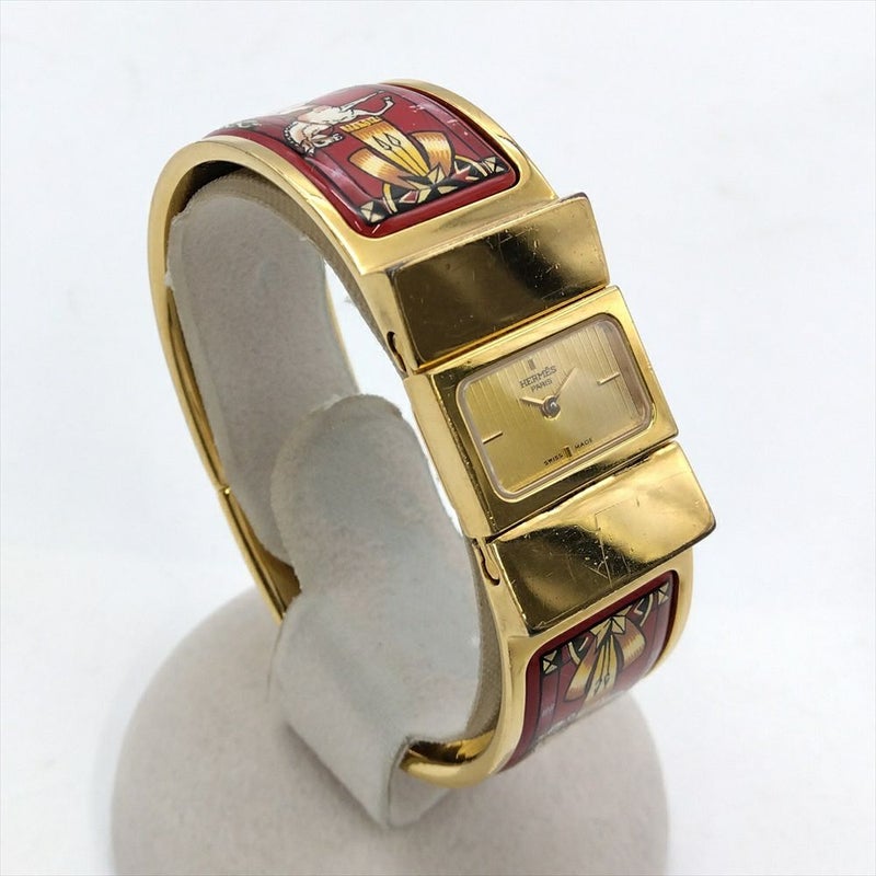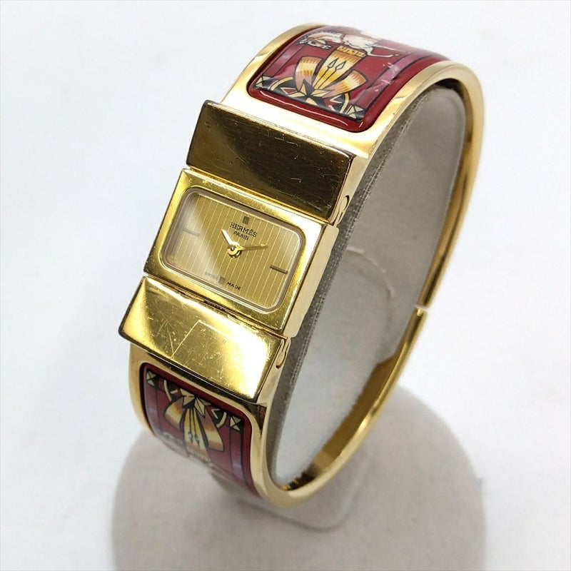 - エルメス HERMES L01.201 ロケ エマイユ バングル ウォッチ 腕時計 ゴールド文字盤 ゴールド 七宝焼き 稼働 レディース【中古】
