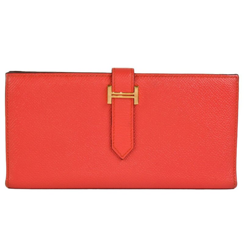 送料無料 エルメス HERMES ベアン スフレ ヴェルソ 長財布 ヴォーエプソン C刻印(2018年製造)刻印 カプシーヌ ゴールド金具 オレンジ系 バイカラー【中古】