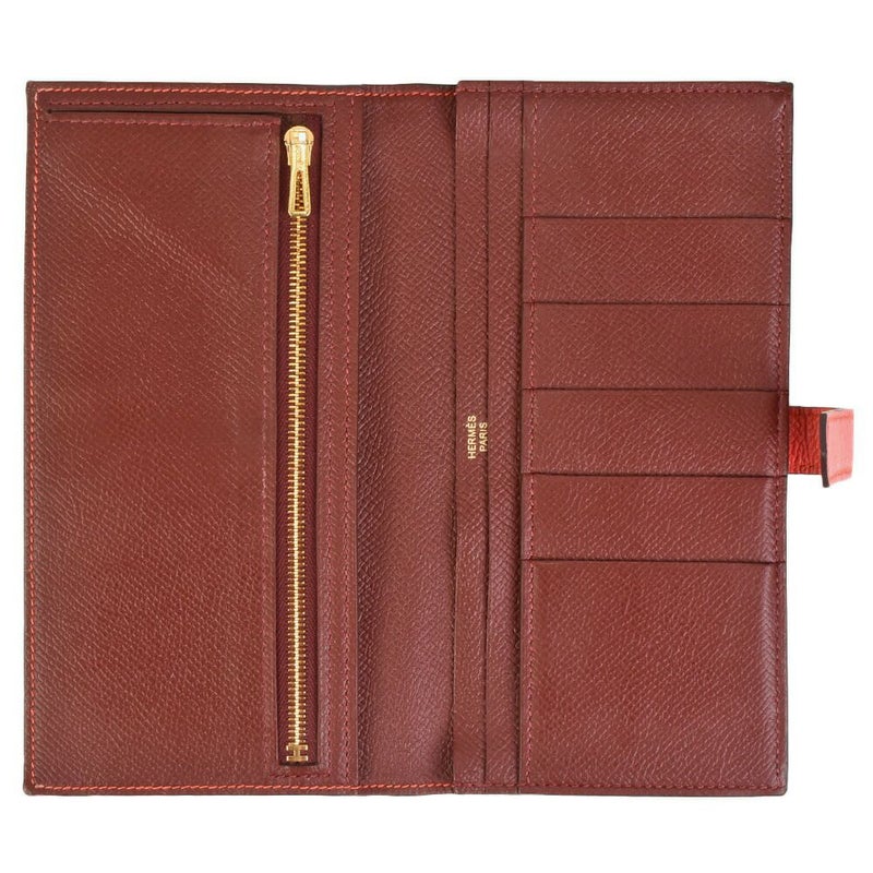 3. エルメス HERMES ベアン スフレ ヴェルソ 長財布 ヴォーエプソン C刻印(2018年製造)刻印 カプシーヌ ゴールド金具 オレンジ系 バイカラー【中古】