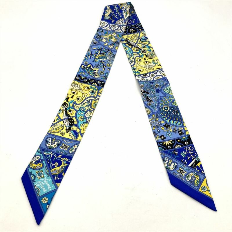 エルメス HERMES ツイリー 花咲く鳥たちの国で Au Pays des Oiseaux Fleurs スカーフ 85.5cm ブルー レディース【中古】