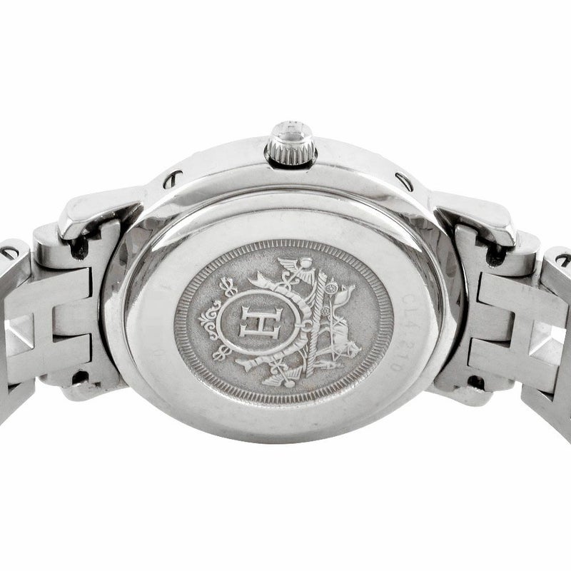 5. エルメス HERMES CL4.210 クリッパー ナクレ デイト 腕時計 ネイビー文字盤 クォーツ 稼働品 SS レディース【中古】