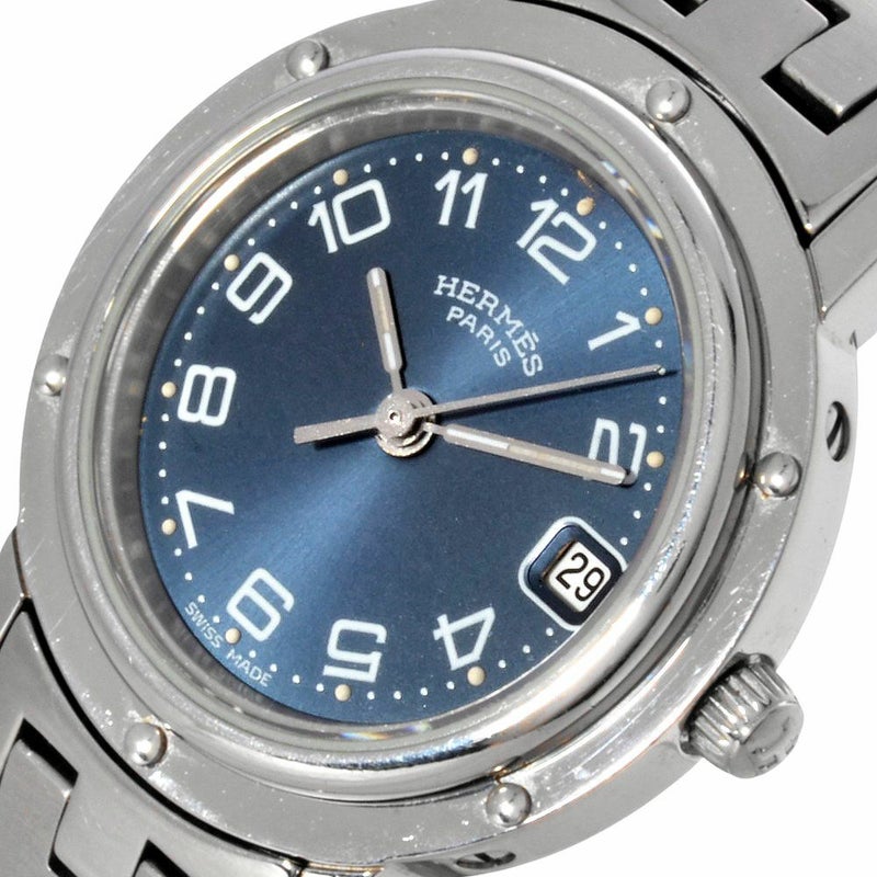 3. エルメス HERMES CL4.210 クリッパー ナクレ デイト 腕時計 ネイビー文字盤 クォーツ 稼働品 SS レディース【中古】