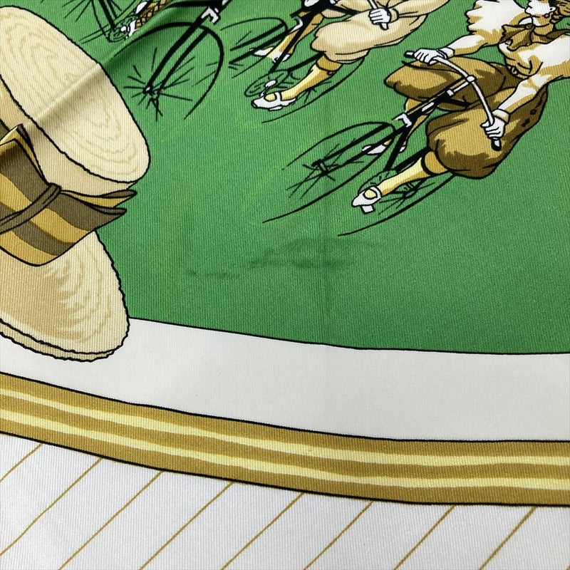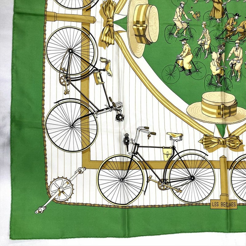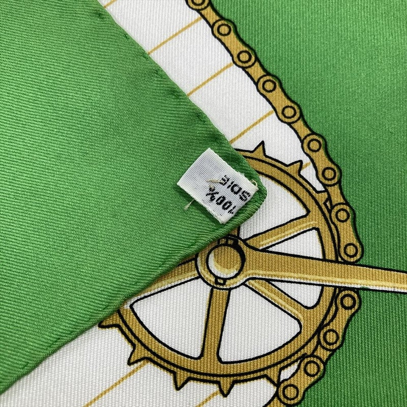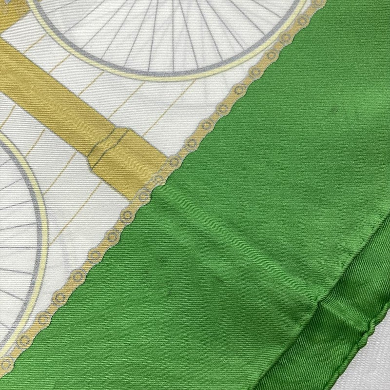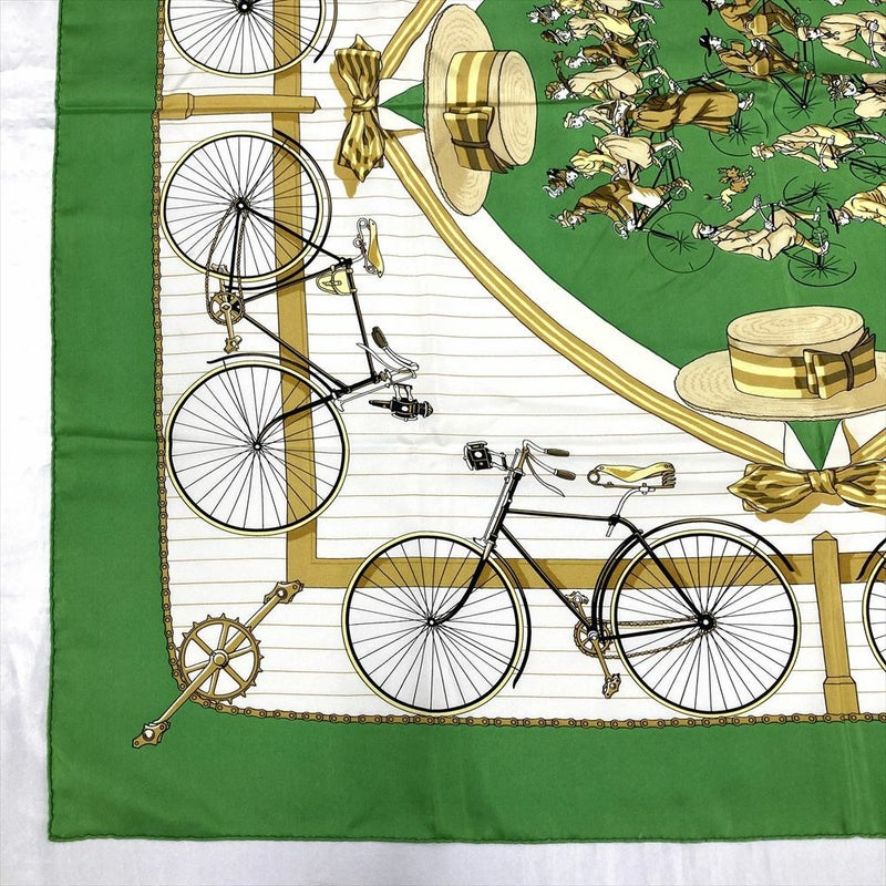 4. エルメス HERMES カレ90 自転車 LES BECANES スカーフ シルク グリーン レディース【中古】